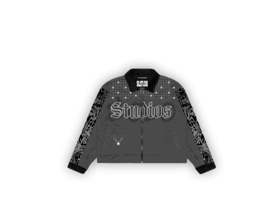Introducing our standout Grey Denim jean jacket, featuring bold "studios" lettering in striking white across the back. This jacket is adorned with unique white designs that give it an eye-catching flair. On the front left side, you'll find a stylish white star, complemented by a silver chain hanging below it for an added touch of edge. Made by Solo.Studio , this jacket combines quality craftsmanship with a trendy aesthetic, making it a perfect addition to any fashion-forward wardrobe.